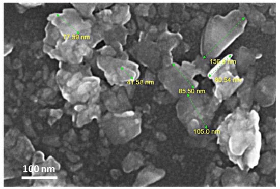 Figure 2 shows an SEM image of the WS2 sheets deposited onto the Si plate after the evaporation of DMF from the solution prepared using WS2 sheets, resulting from grinding flakes for one hour at 900 rpm, and then its dispersion by ultrasonication in DMF.