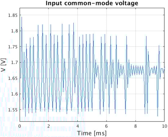 Simulation of the common mode voltage at the input of the INA331 within the EIS-based sensor node modeled in the co-simulation framework.