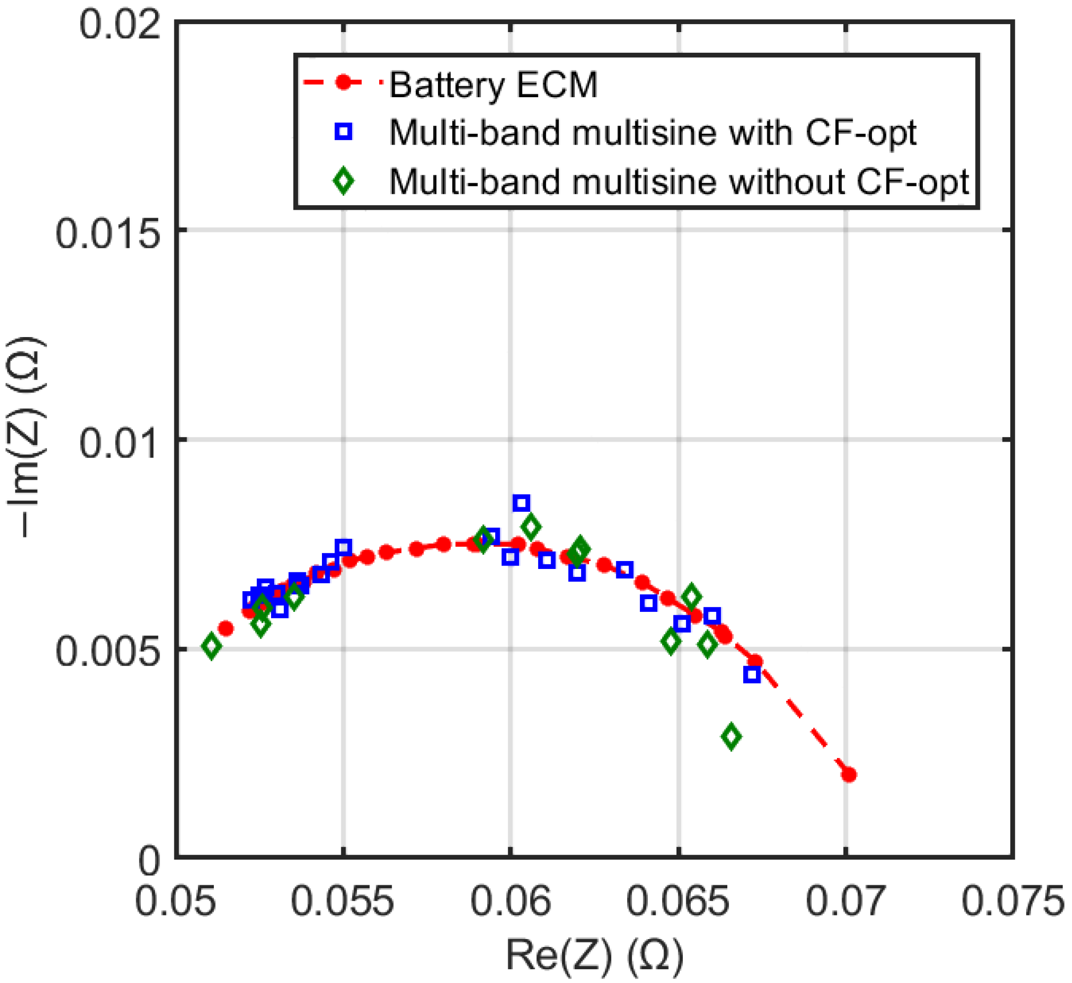 - Lowenthal, N.; Ramilli, R.; Crescentini, M.; Traverso, P.A. Development of a numerical framework for the analysis of a multi-tone EIS measurement system. In Proceedings of the 2023 IEEE International Workshop on Metrology for Automotive (MetroAutomotive), Modena, Italy, 28–30 June 2023; pp. 41–45. [Google Scholar]