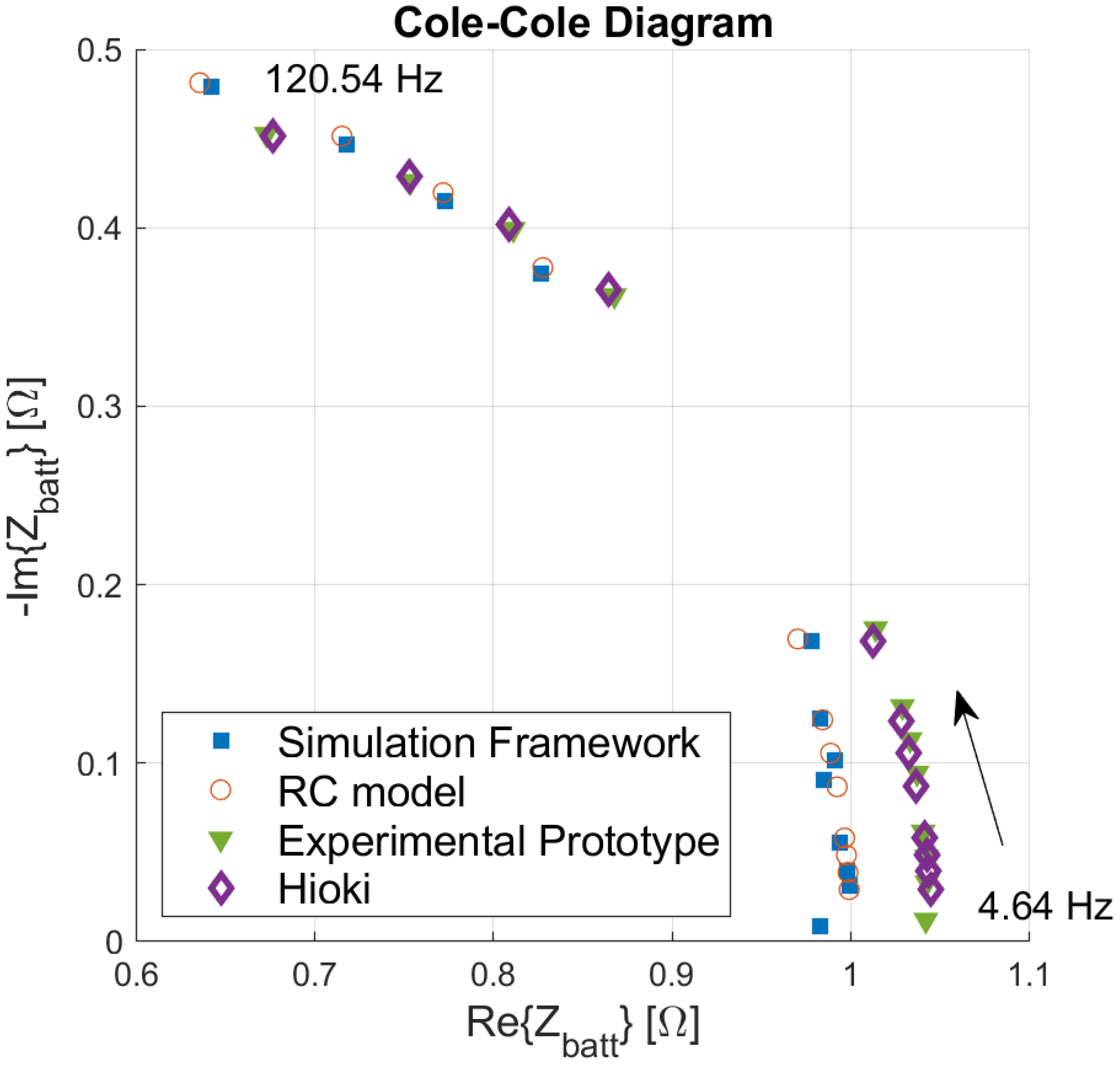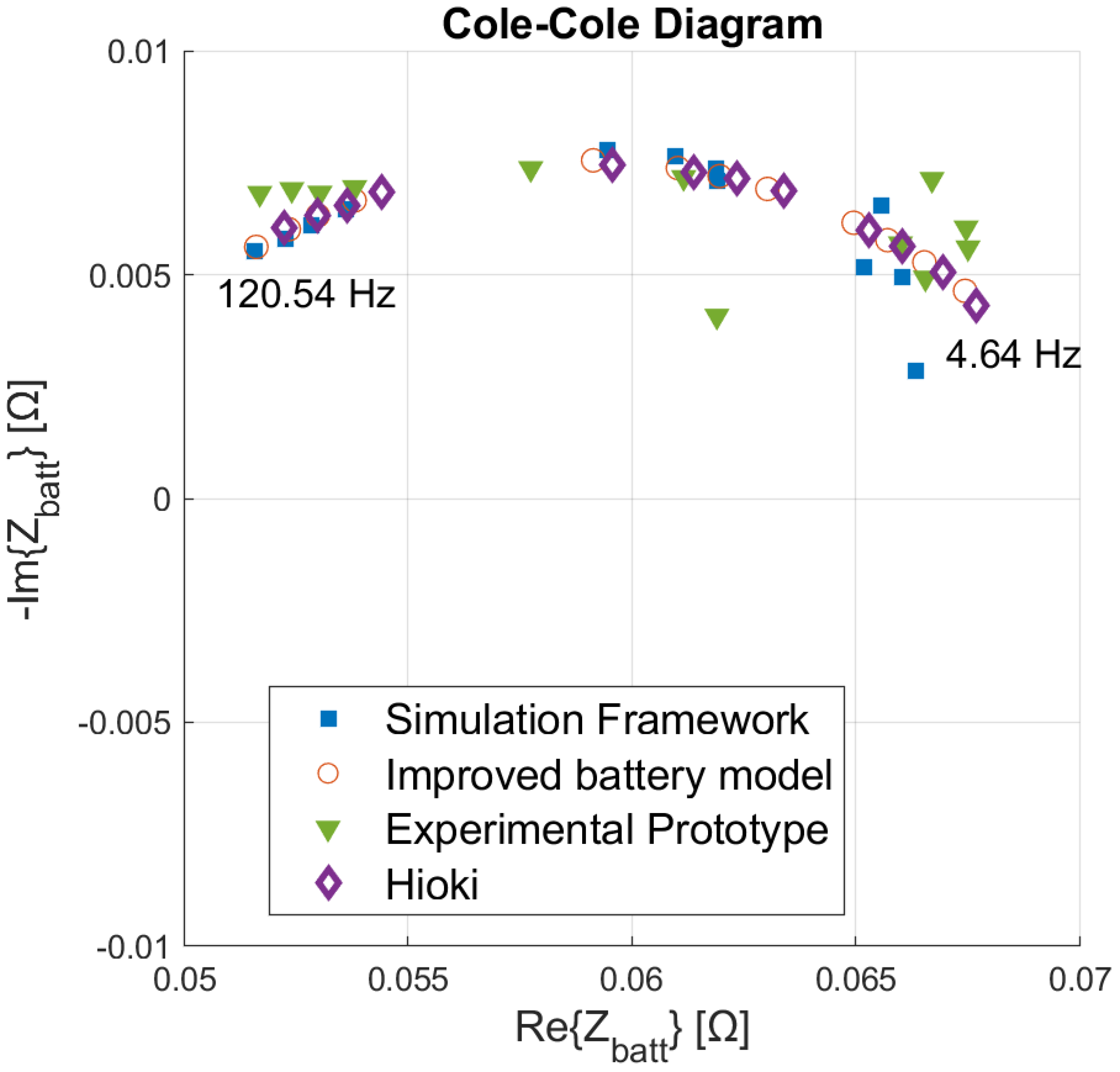- Fernández Pulido, Y.; Blanco, C.; Anseán, D.; Garcia, V.; Martin, F.J.; Valledor, M. Determination of suitable parameters for Battery Analysis by Electrochemical Impedance Spectroscopy. Measurement 2017, 106, 1–11. [Google Scholar] [CrossRef]