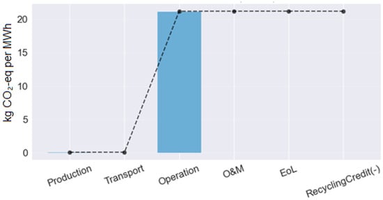 Additionally, the current methodology does not include the secondary value of components, such as the cascading use of lithium-ion batteries after their use in electric vehicles. While such applications have the potential to significantly reduce the LCOS and GWP, they require detailed input data on the residual capacity, reintegration costs, and operational reliability in a stationary environment. Due to this uncertainty, they are not included at this stage but are identified as a priority direction for future expansion, especially in the context of a circular economy and sustainable business models.