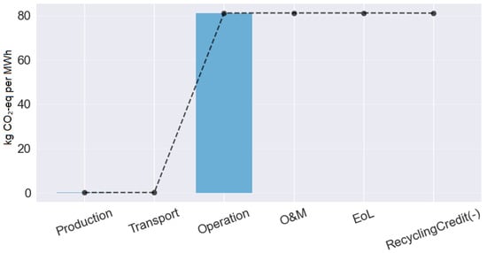 - Integration of environmental and economic analyses: In LCOS calculations, costs are naturally normalized to delivered energy. Adopting the same FU in the LCA enables a direct coupling of the environmental and economic results, thereby providing a unified sustainability perspective.