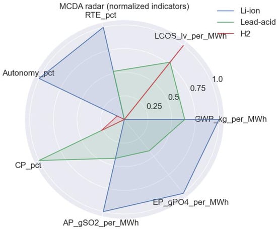 Additionally, future extensions of the analysis may include redox flow batteries, such as vanadium-redox and zinc-bromine systems, which are showing increasing interest as long-term stationary storage solutions. As empirical data on their efficiency, environmental profile, and market applicability accumulate, they will represent a valuable addition to multi-criteria comparative assessments.