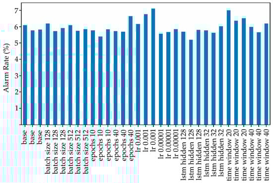 To evaluate the robustness of the proposed model under different parameter configurations, we conducted a sensitivity analysis using the One-at-a-Time method. Based on the baseline settings described previously, five key hyperparameters were examined: batch size, the number of training epochs, the learning rate, the number of LSTM hidden units, and time window length. In each experiment, only one hyperparameter was varied while the others were kept fixed, and the results were compared against those of the baseline configuration.
