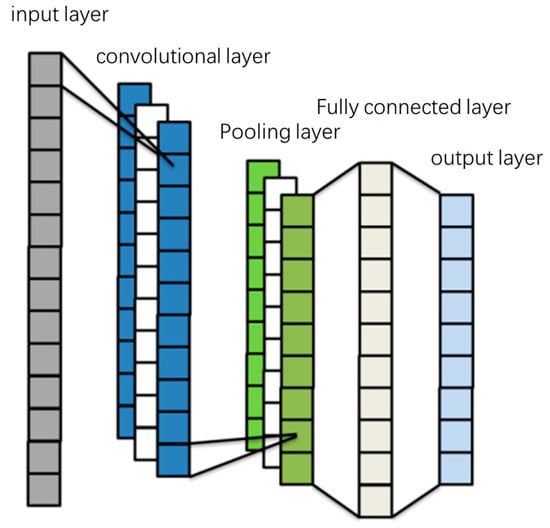 CNN is an improved feedforward backpropagation network based on the theory of visual receptive field [16,17], capable of processing multi-dimensional data such as images, time series, and text. Its parameter sharing mechanism enhances the generalization ability while reducing the number of parameters and model complexity. In contrast, fully connected networks extract high-level features through dense connections. The typical structure of CNN consists of convolutional layers, pooling layers, and fully connected layers. Each layer performs different functions, as shown in Figure 1.