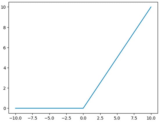 The ReLU activation function is shown in Figure 2. As a piece-wise function, ReLU can be expressed as Equation (8):