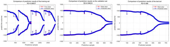 From Figure 9, it can be seen that the error distributions of the training set error histogram, validation set error histogram, and test set error histogram are mostly concentrated around zero error. This indicates that the model’s prediction error is small and the distribution is relatively concentrated, suggesting that the deep learning model optimized by the Alpha evolutionary algorithm has high accuracy and stability in lithium battery life prediction. The error distribution being concentrated around zero error means that the deviation between the model’s prediction results and the actual values is small.