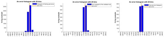 The error histograms of the partial training set, validation set, and test set.