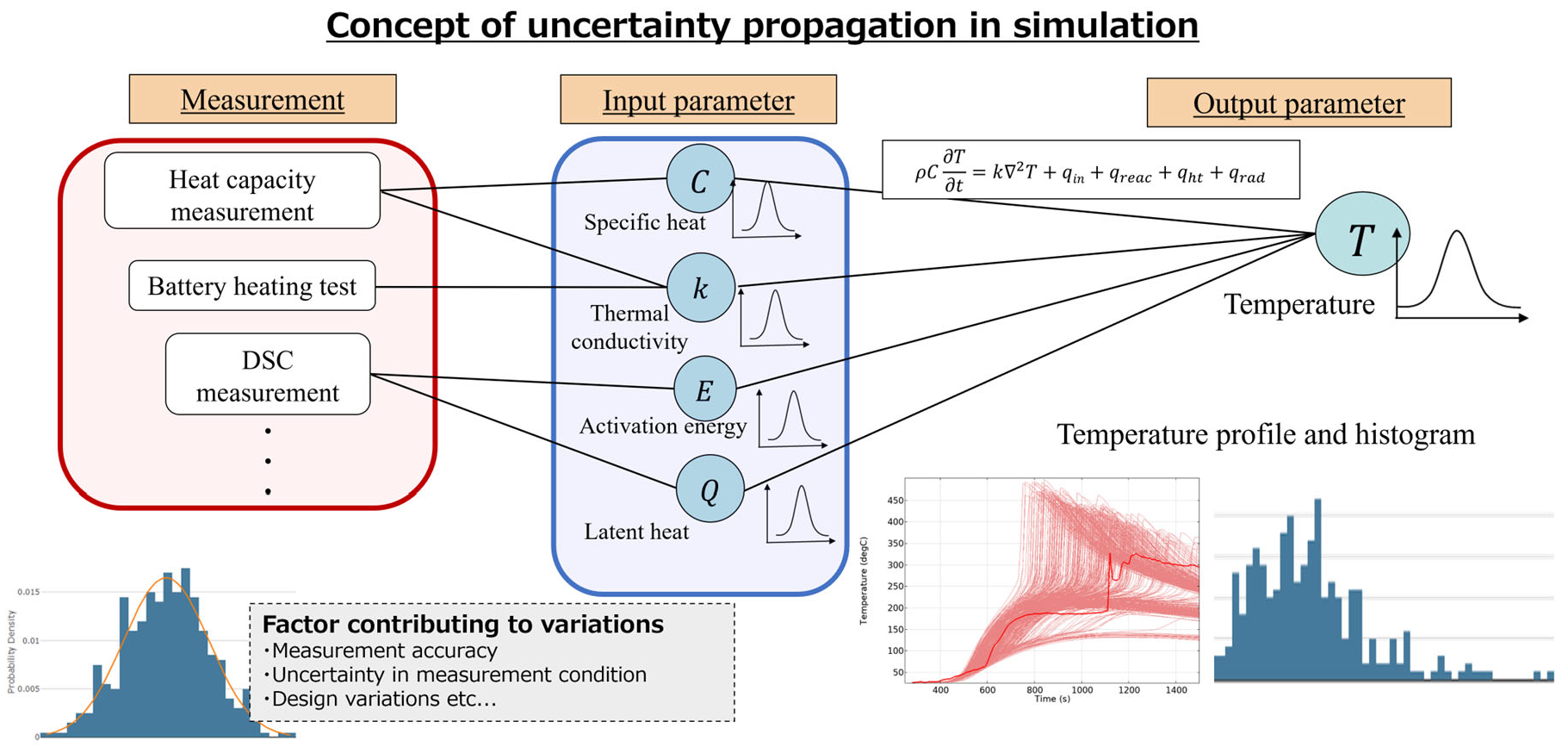 It should be noted that, in this study, the probability distribution of the explanatory variables was assumed to be normal. This assumption is not self-evident. With a sample size of n = 3, the data may not accurately reflect the actual variability. The assumed distribution and the accuracy of the standard deviation could potentially affect the frequency of the battery temperature and the thermal runaway timing. In the future, it would be necessary to evaluate the mean and standard deviation based on measurements with an increased number of samples.