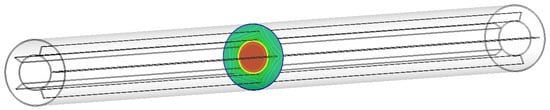 Cao’s study [42] on double-layer PCM-ESTs analyzed the impact of parameters such as tube length and diameter on the heat exchange performance of a single tube. The research demonstrated that maintaining a constant overall PCM volume distributed across multiple tubes yields an efficient heat exchange energy storage device. Complementing this, Yuwen Z. [26] investigated the contribution of fin number, thickness, and height to the enhanced heat storage performance of a double-layer PCM-EST. Building upon this prior work, the present study adopts a similar approach. Based on this research, the inner and outer diameters of the PCM-EST adopted in this paper are specified as follows: the diameter of the heat exchange tube = 28 mm, the diameter of the insulation layer = 67 mm, and the wall thickness is set at 1 mm. We study the influence of the number of fins on the energy efficiency heat storage of the PCM-EST. Through analysis, the final structure of the PCM-EST is determined. The specific parameters used in the simulation are detailed in Table 2.