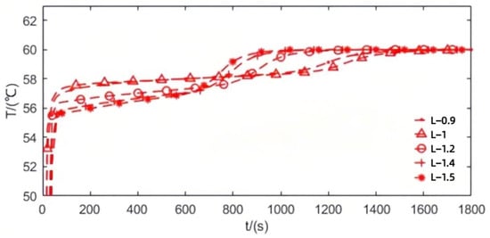 Since the structural design of the double-layer PCM-EST takes into account its own weight m, in order to achieve a lightweight design, the relationship between the three design variables and the mass m is analyzed. The response graph is shown in Figure 19. In practical use, liquid volume exists inside the inner tube, and this factor is considered in the weight calculation. Therefore, as seen in Figure 19, all of the variables , , and are positively correlated with the mass m, with the influence of being more significant. To meet the lightweight design requirement, the goal is to minimize m, meaning the values of , , and should be reduced.