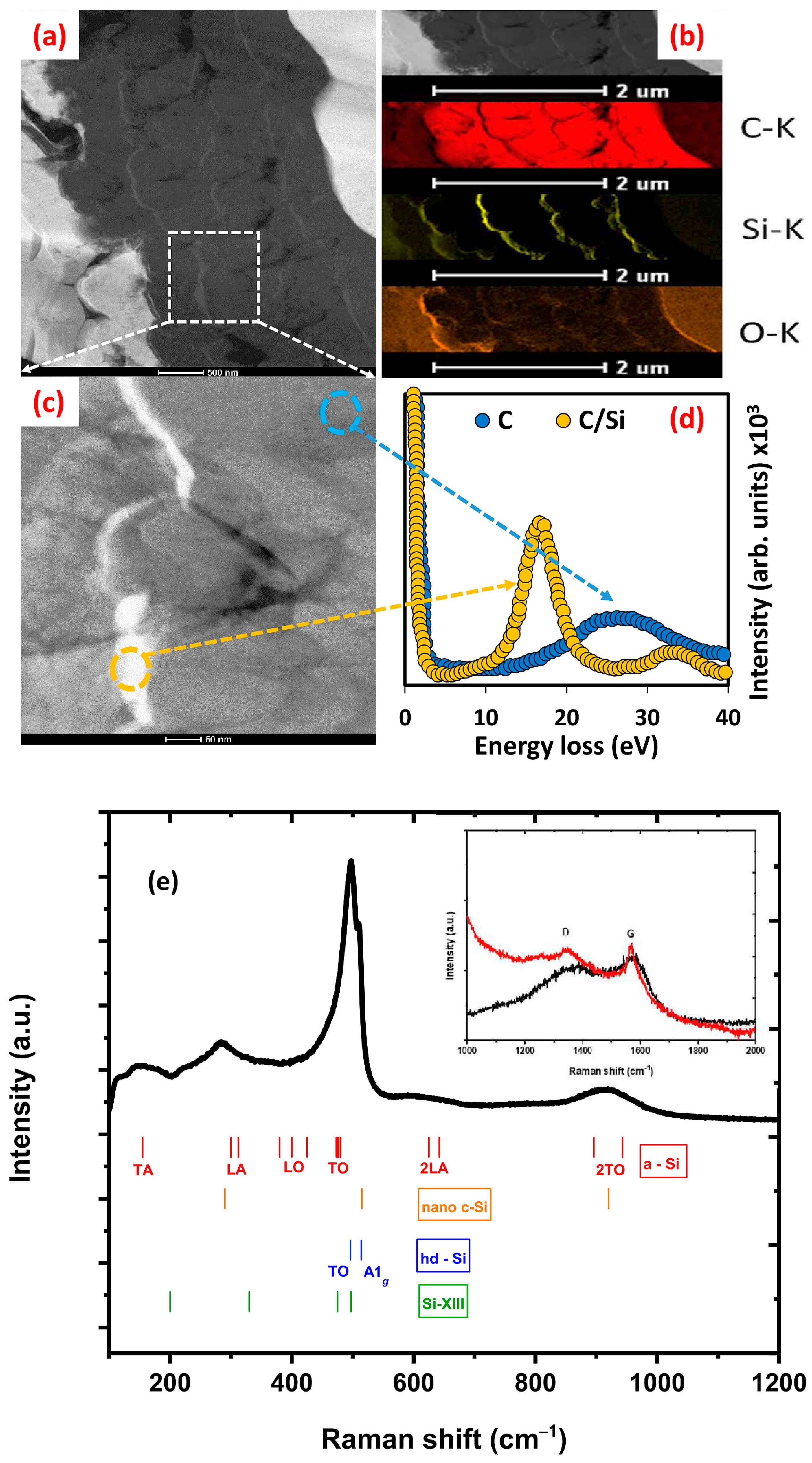 - Mishra, P.; Jain, K.P. First- and second-order Raman scattering in nanocrystalline silicon. Phys. Rev. B 2001, 64, 73304–73308. [Google Scholar] [CrossRef]