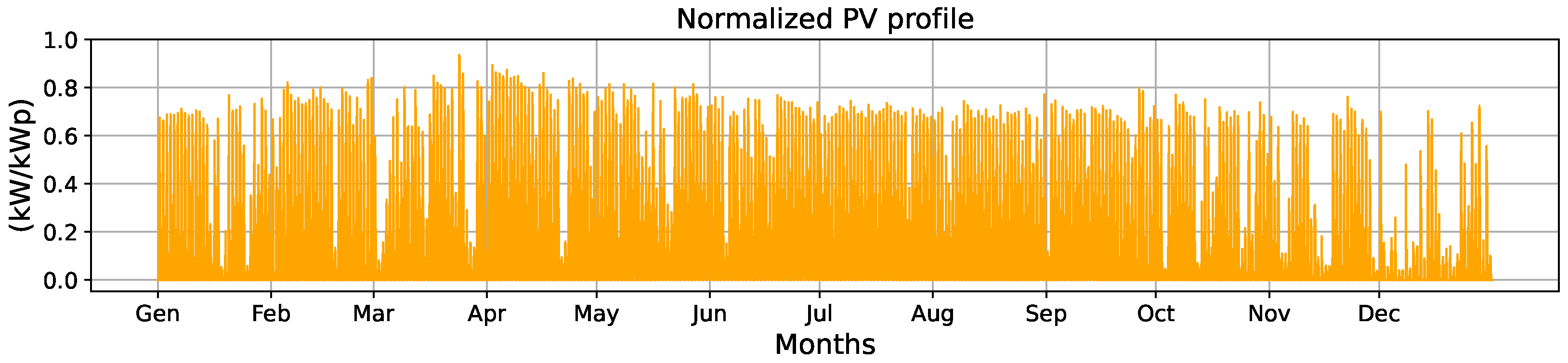 denotes the power profile of a 1 kWp PV system. By employing Equation (