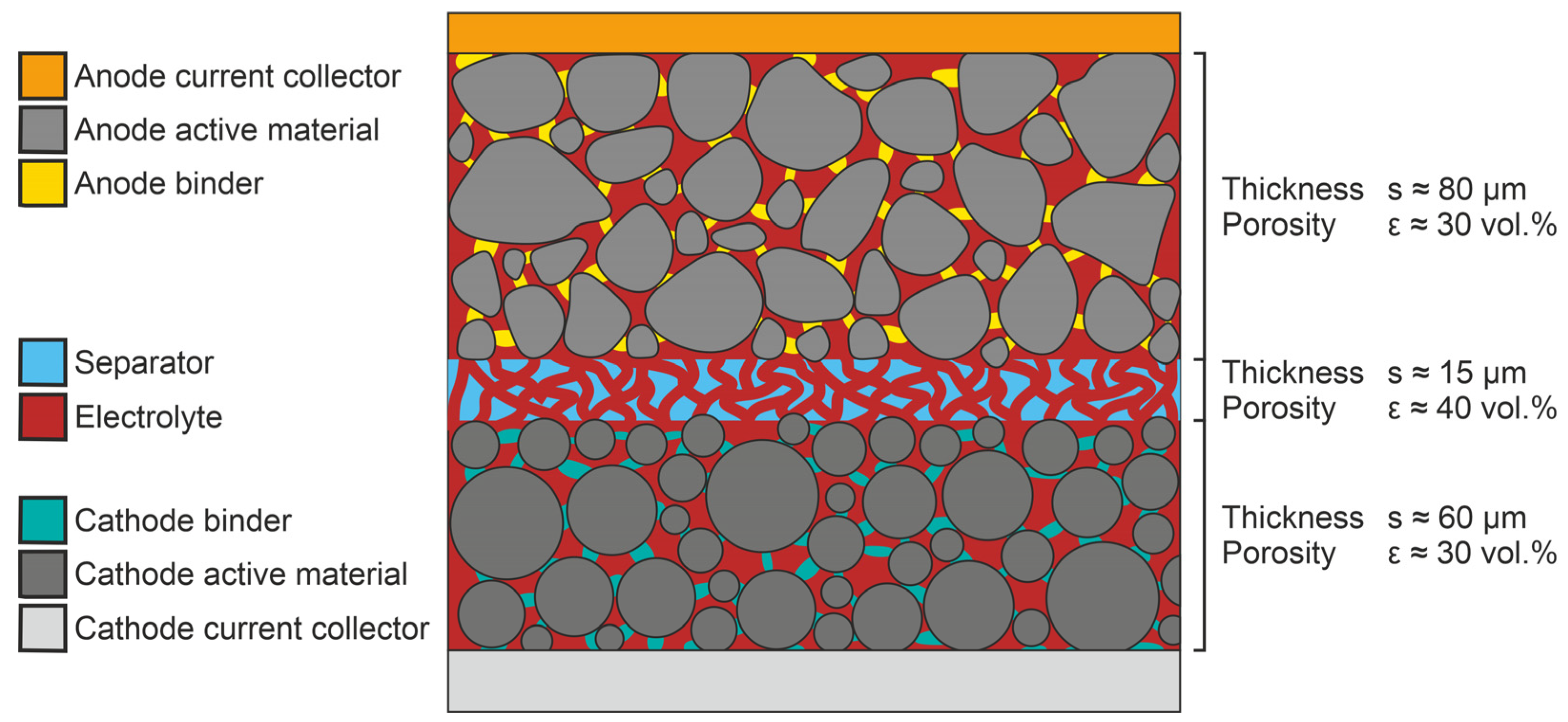 1]. The schematic structure of a LIB cell, with the respective materials of its electrodes and the separator, is visualized in
