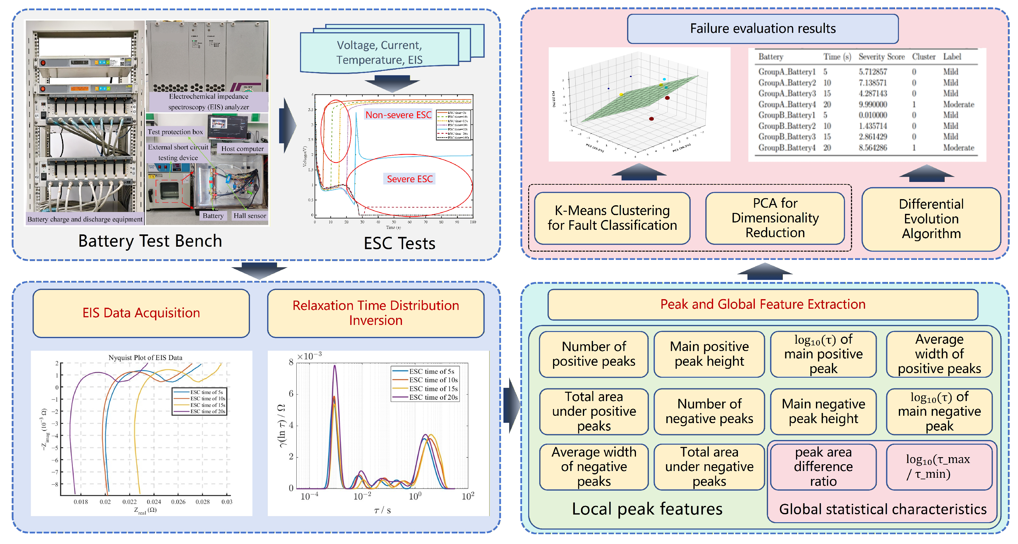 - A differential DRT analysis method is proposed for the first time to grade ESC severity. Unlike traditional methods that rely on raw voltage or temperature thresholds, this approach isolates fault-induced electrochemical changes, specifically mass transport limitations from static inconsistencies, thereby establishing a new, high-sensitivity metric for battery safety assessment.