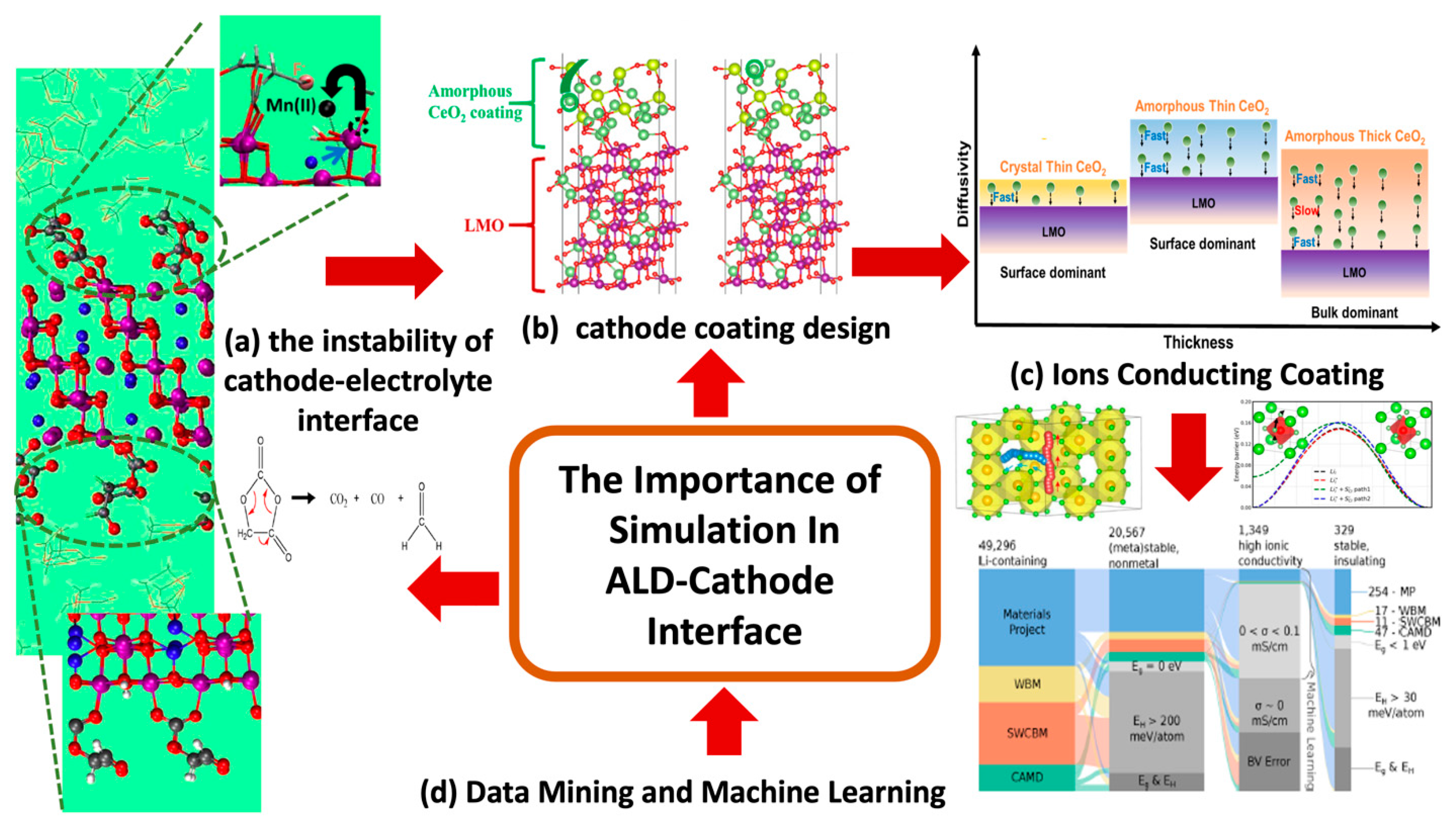 - Nguyen, J.A.; Becker, A.; Kanhaiya, K.; Heinz, H.; Weimer, A.W. Analyzing the Li–Al–O Interphase of Atomic Layer-Deposited Al2O3 Films on Layered Oxide Cathodes Using Atomistic Simulations. ACS Appl. Mater. Interfaces 2024, 16, 1861–1875. [Google Scholar] [CrossRef] [PubMed]