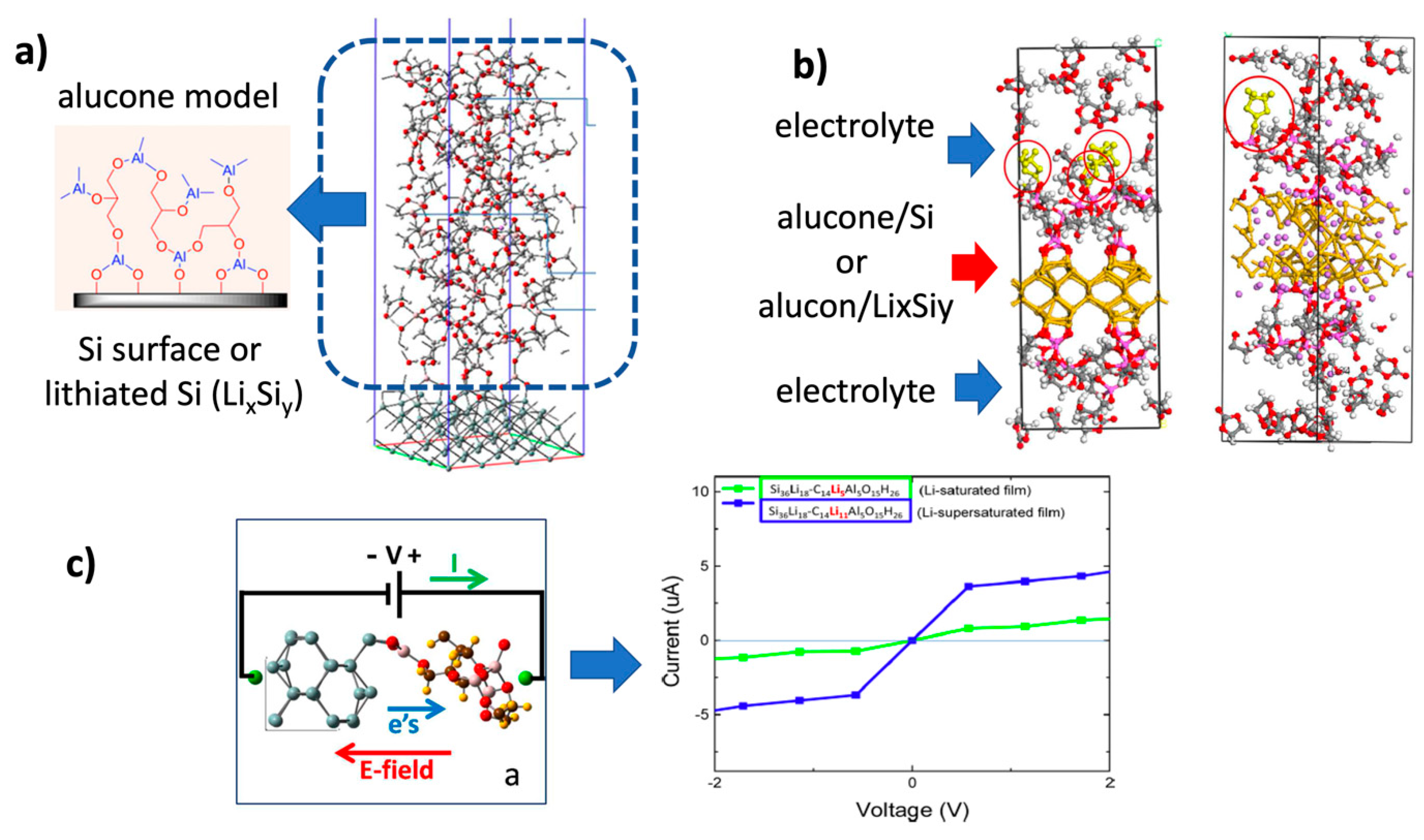 - Ma, Y.; Martinez de la Hoz, J.M.; Angarita, I.; Berrio-Sanchez, J.M.; Benitez, L.; Seminario, J.M.; Son, S.-B.; Lee, S.-H.; George, S.M.; Ban, C.; et al. Structure and Reactivity of Alucone-Coated Films on Si and LixSiy Surfaces. ACS Appl. Mater. Interfaces 2015, 7, 11948–11955. [Google Scholar] [CrossRef] [PubMed]