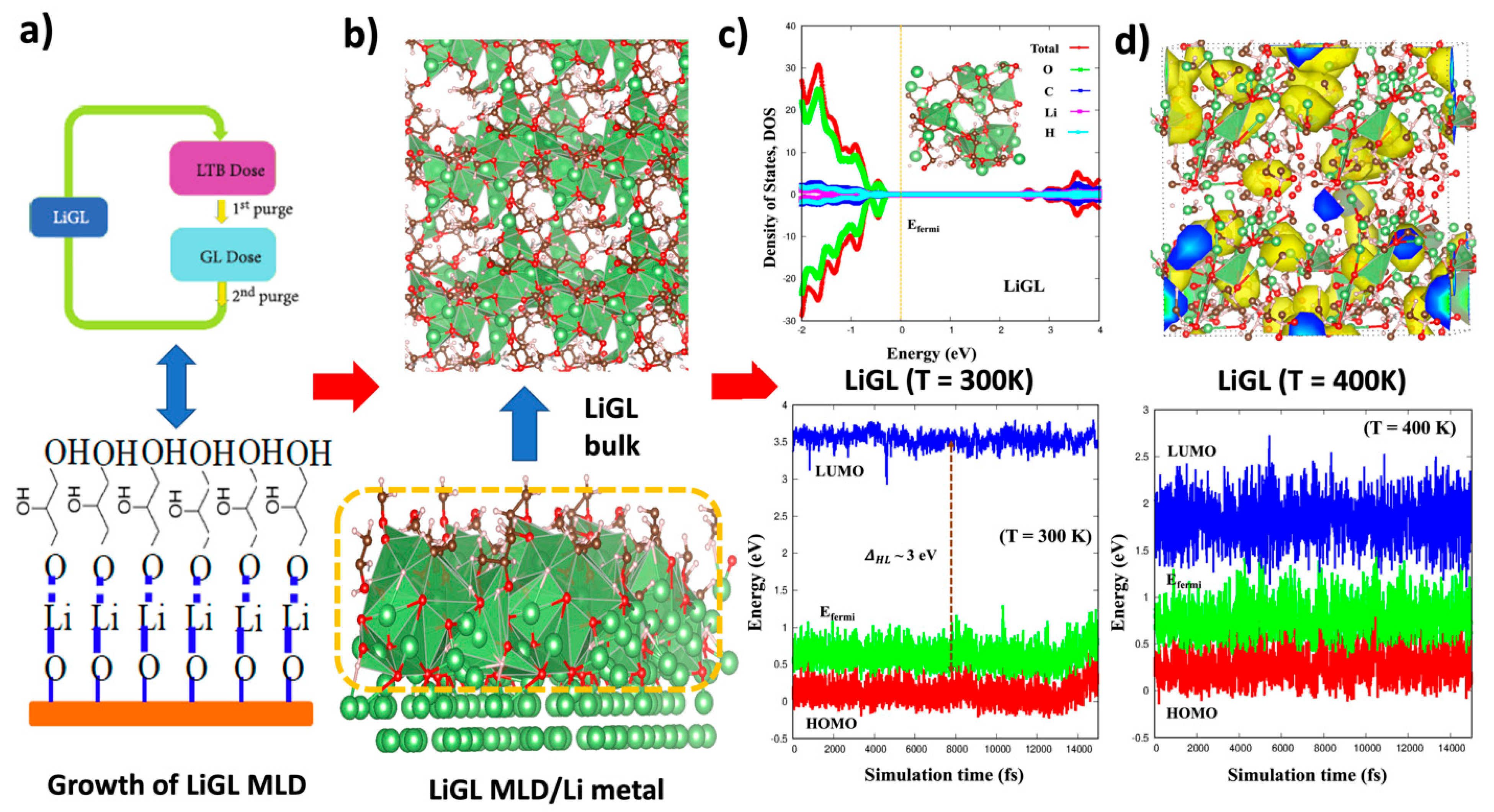 - Meng, X.; Lau, K.C.; Zhou, H.; Ghosh, S.K.; Benamara, M.; Zou, M. Molecular Layer Deposition of Crosslinked Polymeric Lithicone for Superior Lithium Metal Anodes. Energy Mater. Adv. 2021, 2021, 9786201. [Google Scholar] [CrossRef]