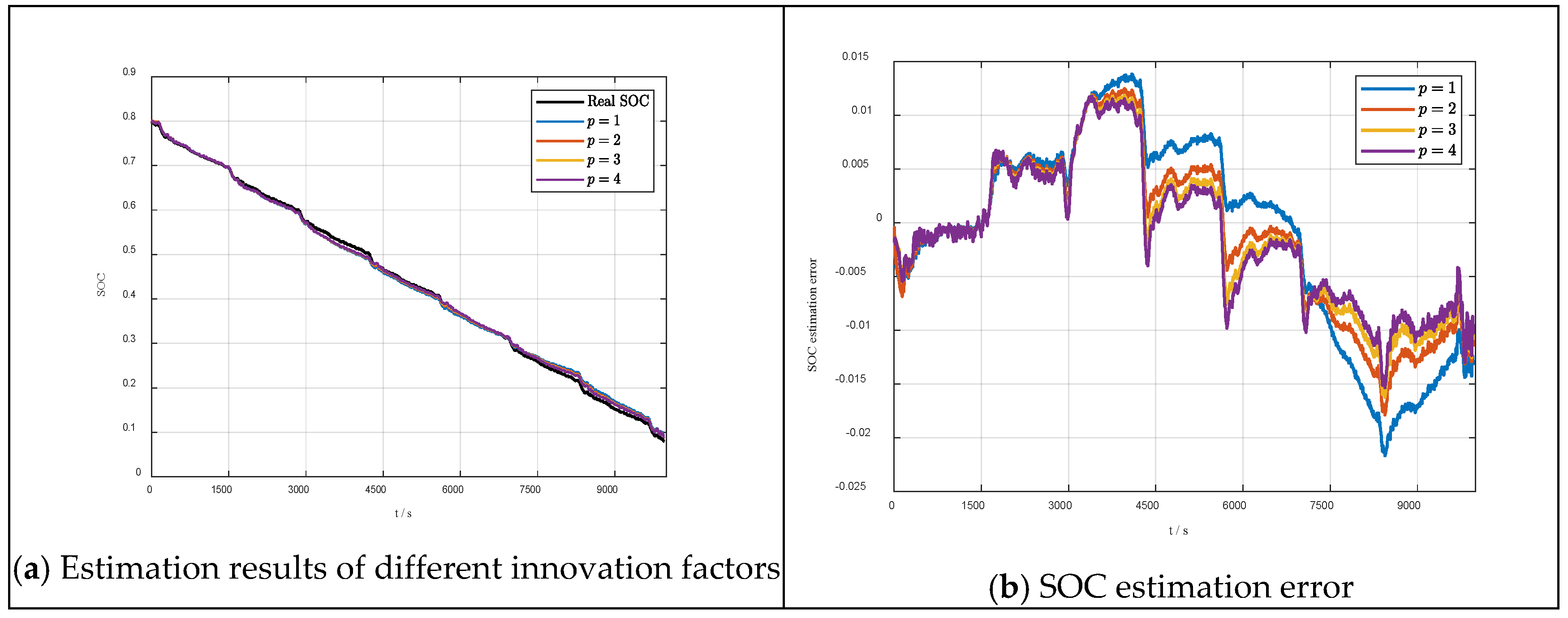 Figure 6. Comparison of SOC estimations for different innovation factors.