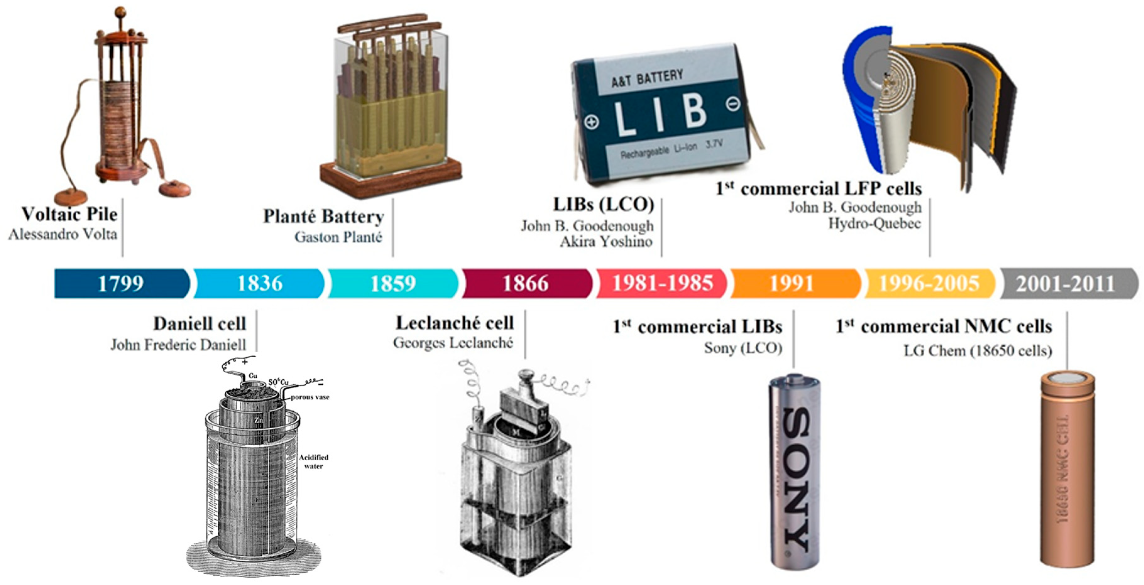 - Heth, C.L. Energy on demand: A brief history of the development of the battery. Substantia 2019, 3, 77–86. [Google Scholar] [CrossRef]