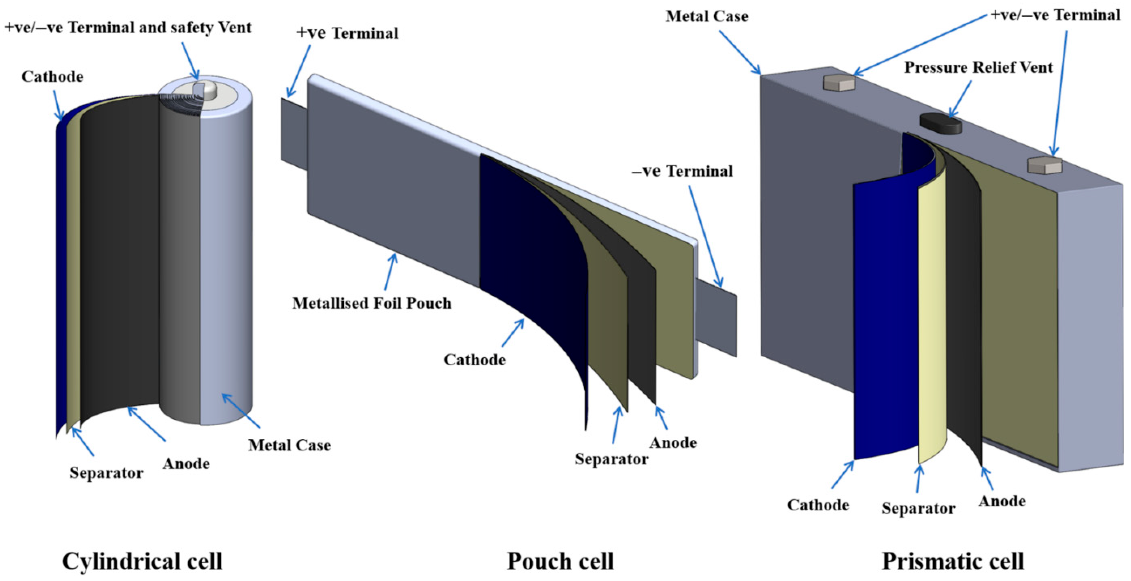 | External shape | Cylindrical Box metal casing | Rectangular box (Rigid metal casing) | Polymer–aluminium laminate | [149] |