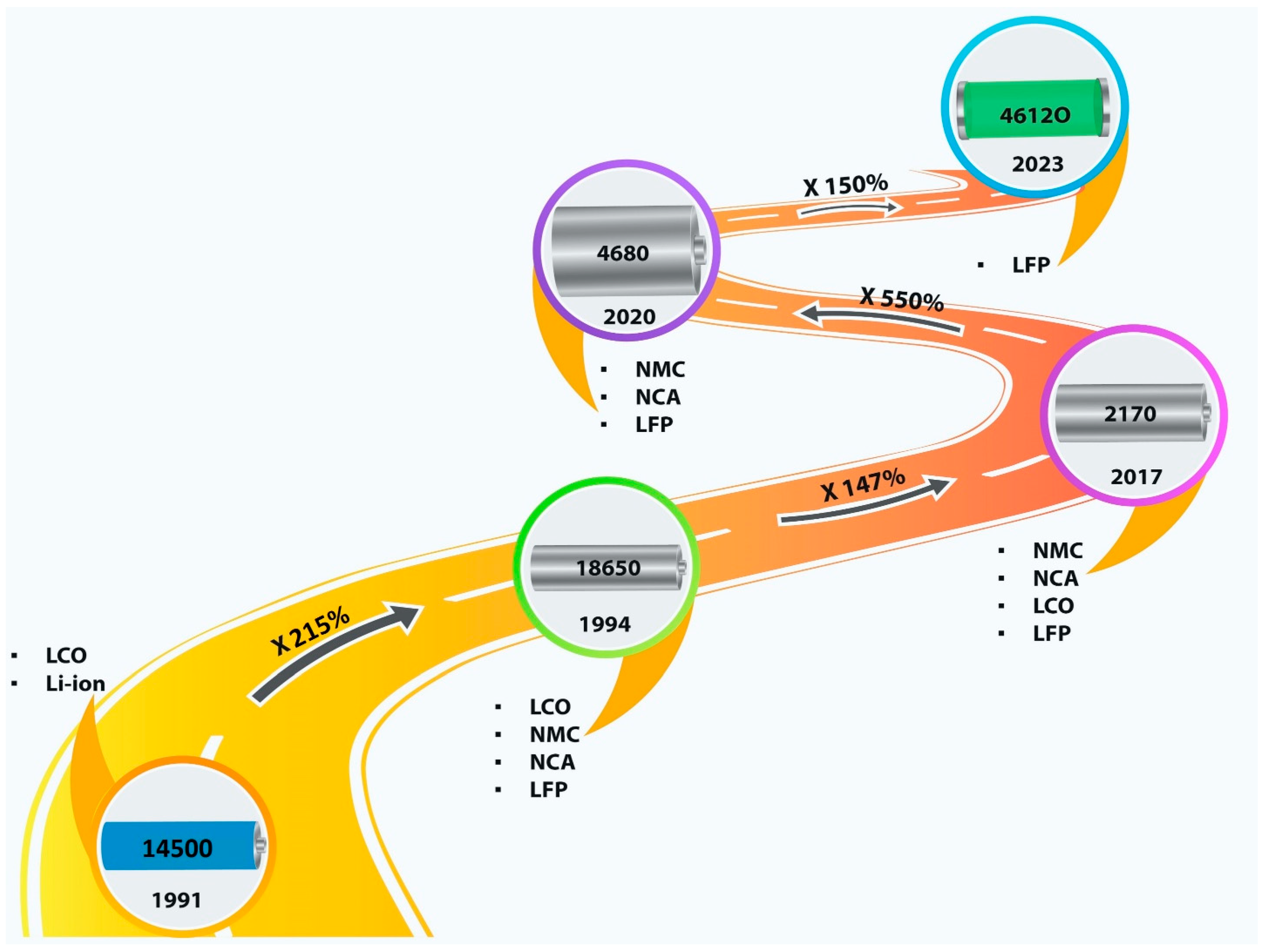 | Chemistry | LFP | NMC | LCO | NCA | LMO | Reference |