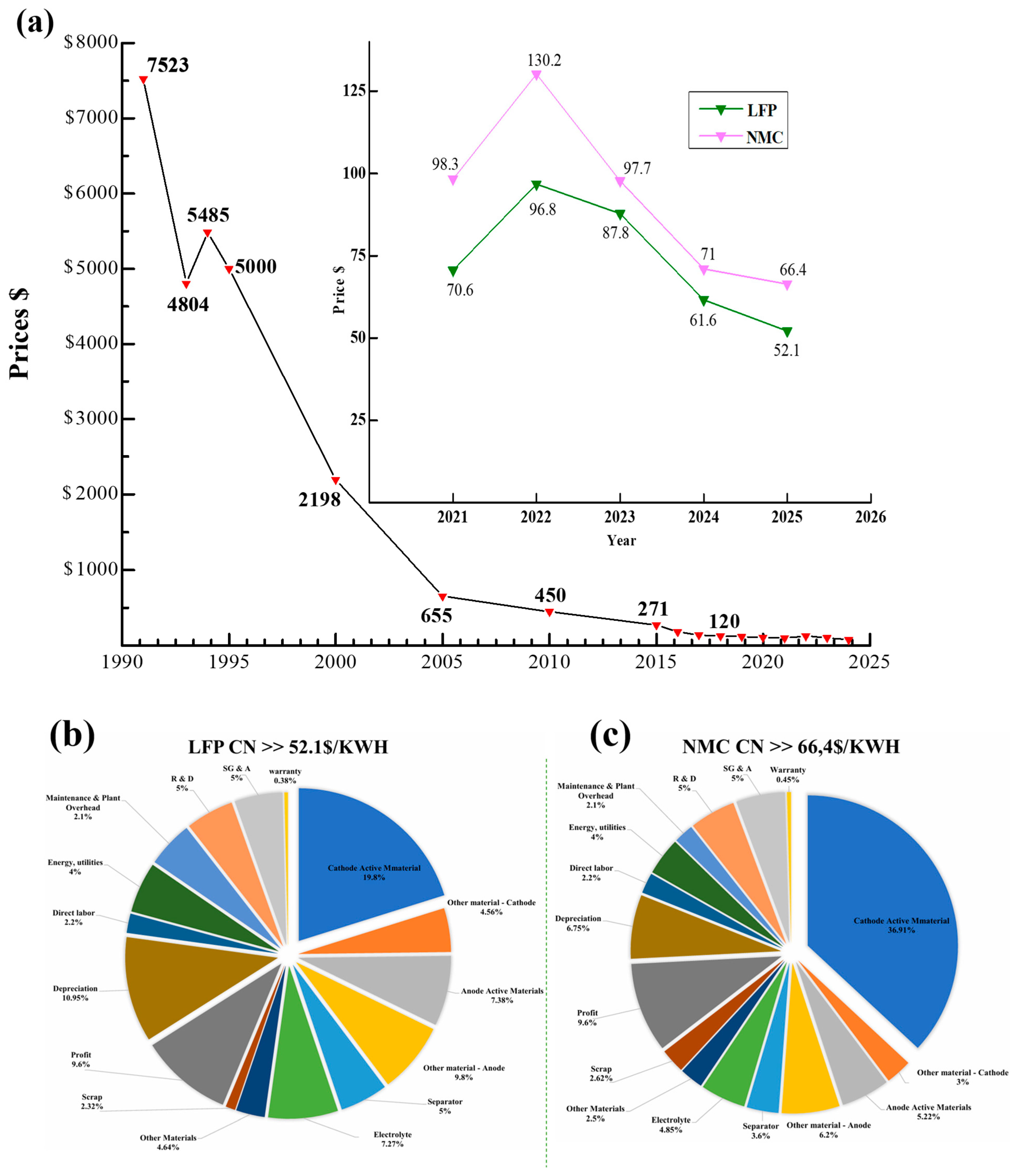 - Orangi, S.; Manjong, N.; Clos, D.P.; Usai, L.; Burheim, O.S.; Strømman, A.H. Historical and prospective lithium-ion battery cost trajectories from a bottom-up production modeling perspective. J. Energy Storage 2024, 76, 109800. [Google Scholar] [CrossRef]