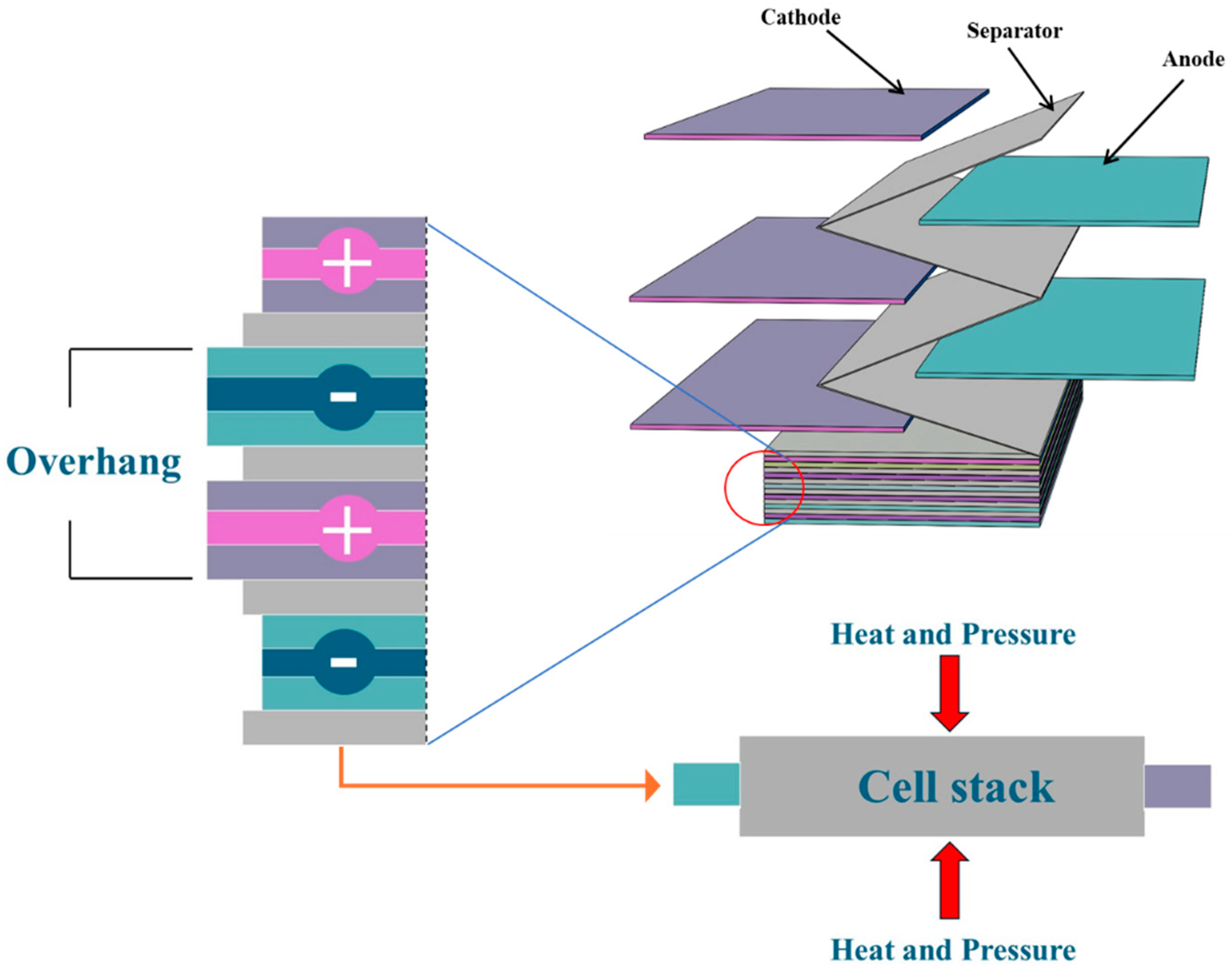 | N:P effective area mismatch from curvature | Curved winding changes local pressure/separation → non-uniform reaction utilization | Re-optimize coating and stacking to reduce fast charging and balance utilization more effectively. | [424] |
