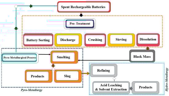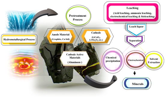 - Asadi Dalini, E.; Karimi, G.; Zandevakili, S.; Goodarzi, M. A review on environmental, economic and hydrometallurgical processes of recycling spent lithium-ion batteries. Miner. Process. Extr. Metall. Rev. 2021, 42, 451–472. [Google Scholar] [CrossRef]