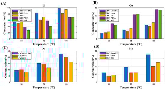 - Jafari, M.; Shafaie, S.Z.; Abdollahi, H.; Entezari-Zarandi, A. Green recycling of spent Li-ion batteries by deep eutectic solvents (DESs): Leaching mechanism and effect of ternary DES. J. Environ. Chem. Eng. 2022, 10, 109014. [Google Scholar] [CrossRef]