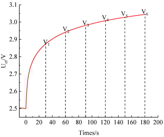 As shown in Figure 4, to fully utilize the battery voltage during the resting process, it is essential to divide this period into equidistant intervals. If the chosen interval is too large, the resting process may not be fully exploited. In this study, the resting voltage recovery process is divided into six intervals and select specific time points after discharge cessation (V1, V2, V3, V4, V5, and V6) as HFs. These time points correspond to the battery voltage at 30 s, 60 s, 90 s, 120 s, 150 s, and 180 s after the start of the resting phase. These voltages are used to analyze the magnitude of voltage recovery after constant current discharge. As the SOH of a battery increases, the remaining SOC at the end of constant current discharge also rises, resulting in higher voltage recovery. Therefore, V1, V2, V3, V4, V5, and V6 exhibit a negative correlation with SOH, which justifies their selection as HFs. The following sections will elaborate on the principles of HF extraction strategy and the rationale behind selecting six specific HFs.