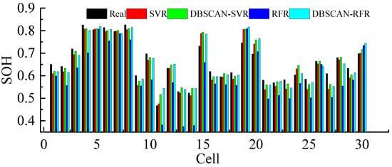 Although the effect of the SVR model used in this paper to estimate SOH is relatively less affected by outliers, the DBSCAN algorithm still reduces the effect of outliers on the SVR model.