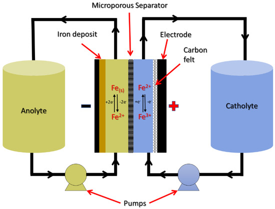 - Belongia, S.; Wang, X.; Zhang, X. Progresses and Perspectives of All-Iron Aqueous Redox Flow Batteries. Adv. Funct. Mater. 2024, 34, 2302077. [Google Scholar] [CrossRef]