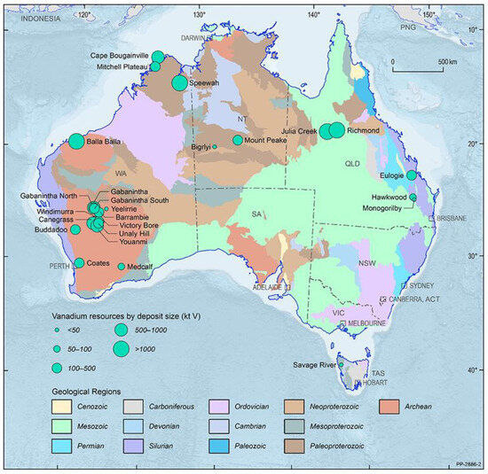 - Roberts, P. Townsville Vanadium Battery Electrolyte Facility Opens. Manufacturing News 2023. Available online: https://aumanufacturing.com.au/townsville-vanadium-battery-electrolyte-facility-opens#:~:text=Miner%20and%20manufacturer%20Vecco%20Group,’big%20win%20for%20Queensland’ (accessed on 9 November 2023).