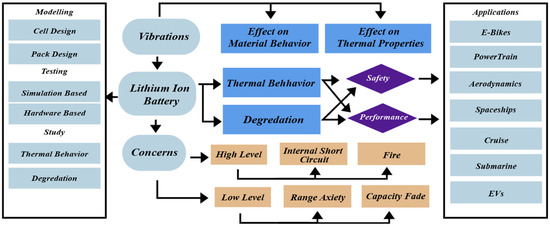This review highlights existing knowledge gaps and comprehensively understands how vibrations influence lithium-ion batteries’ electrical and thermal behaviors in modern applications. This can be summarized as follows: