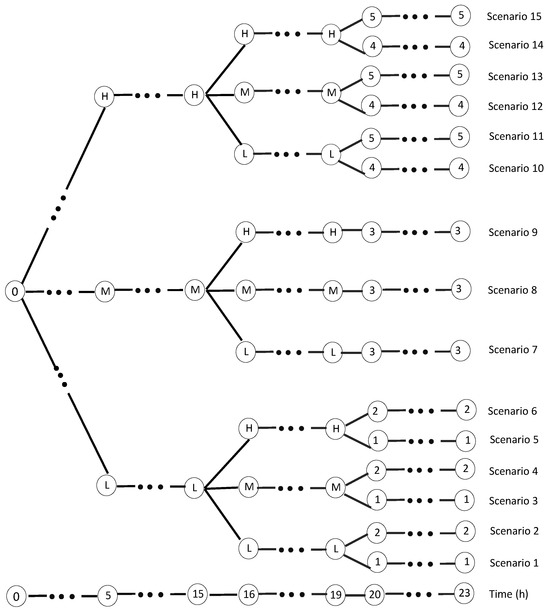 26]. At present, the number of multi-stage models for operational scheduling in energy systems is relatively limited. Most of the smart grid literature focuses on deterministic or two-stage stochastic models to deal with the optimal operational problems of smart energy neighborhoods [