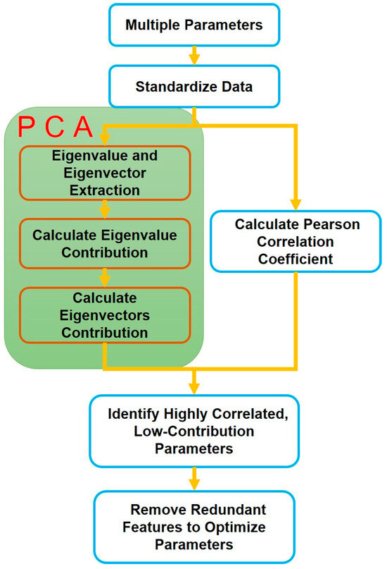 - The eigenvalues and eigenvectors are extracted from the covariance matrix. Each eigenvalue represents the magnitude of the variance explained by its corresponding eigenvector, while each eigenvector explains the direction of a principal component. These values help identify the most important directions, or components, in the data for dimensionality reduction. Eigenvectors and eigenvalues are calculated in Equation (5).