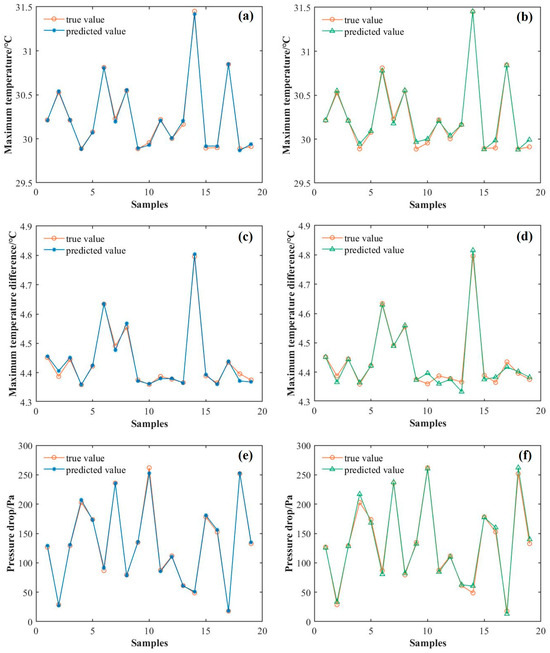 (2) Based on the sample point data obtained through OLHS, a PSO-BPNN surrogate model is established to predict the cooling performance of the spider-web liquid cooling plate. The results indicate that the PSO-BPNN model exhibits superior performance in prediction accuracy, as evidenced by lower MAE and RMSE values and a higher R2 value.