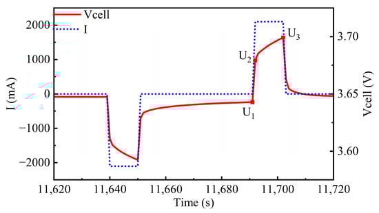 The DCIR during the charge–discharge processes of the battery was calculated using Equations (1)–(3).