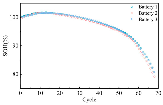 The battery underwent charge–discharge cycles at a fixed rate to induce accelerated aging. Due to the large number of cycles and the extensive data generated during the aging process, test data from the lithium-ion battery at 100%, 90%, and 80% SOHs were selected for analysis.