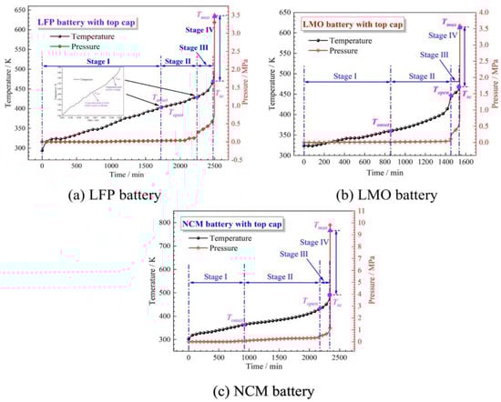 Temperature and pressure versus time curves for flexible pack cells with three different cathodes [].