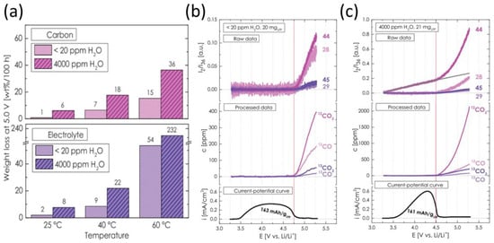 - Metzger, M.; Marino, C.; Sicklinger, J.; Haering, D.; Gasteiger, H.A. Anodic Oxidation of Conductive Carbon and Ethylene Carbonate in High-Voltage Li-Ion Batteries Quantified by On-Line Electrochemical Mass Spectrometry. J. Electrochem. Soc. 2015, 162, A1123–A1134. [Google Scholar] [CrossRef]