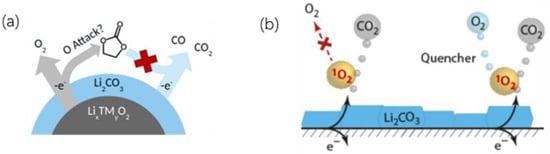 - Mahne, N.; Renfrew, S.E.; McCloskey, B.D.; Freunberger, S.A. Electrochemical Oxidation of Lithium Carbonate Generates Singlet Oxygen. Angew. Chem. Int. Ed. 2018, 57, 5529–5533. [Google Scholar] [CrossRef] [PubMed]