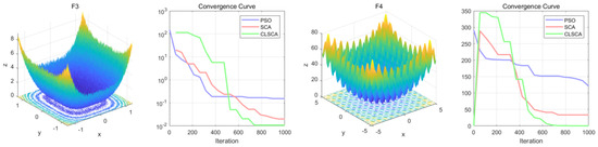 To validate the performance of the CLSCA, this study conducts tests using the benchmark functions from CEC2005. Four test functions are selected, comprising two unimodal functions and two multimodal functions. A comparison is made with classical PSO and the SCA to demonstrate the feasibility and effectiveness of CLSCA optimization. The unimodal functions assess the convergence speed and accuracy of the optimization algorithm, while the multimodal functions evaluate the global search capability. The test functions used are shown in Table 1: