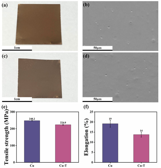- Xu, P.; Lu, W.; Song, K.; Cheng, H.; Hu, H.; Zhu, Q.; Liu, H.; Yang, X. Preparation of Electrodeposited Copper Foils with Ultrahigh Tensile Strength and Elongation: A Functionalized Ionic Liquid as the Unique Additive. Chem. Eng. J. 2024, 484, 149557. [Google Scholar] [CrossRef]