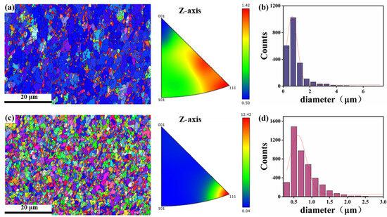 3.3.1. IPF Diagrams and Grain Size Analysis