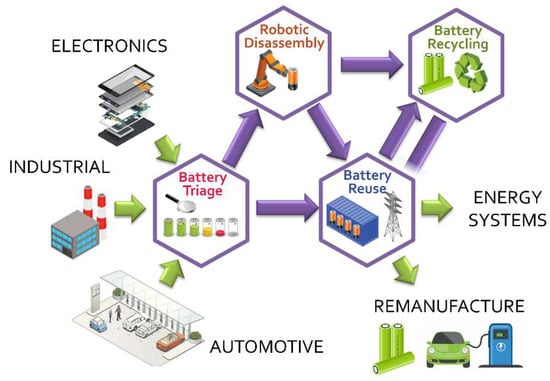 A pathway for the reuse, recycling, and remanufacturing of retired batteries. Adapted from [25].