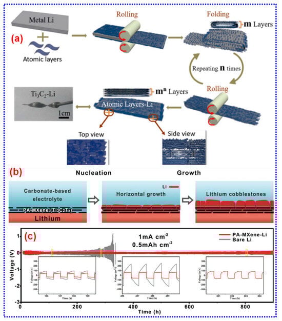- Li, B.; Zhang, D.; Liu, Y.; Yu, Y.; Li, S.; Yang, S. Flexible Ti3C2 MXene-lithium film with lamellar structure for ultrastable metallic lithium anodes. Nano Energy 2017, 39, 654–661. [Google Scholar] [CrossRef]