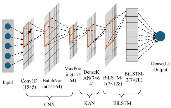 Structure diagram of the CNN-KAN-BiLSTM model.