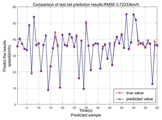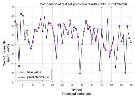The BP neural network-based prediction model shows good generalization ability on the test set, and its root mean square error (RMSE = 0.722) with maximum relative error (6.2%) indicates that the model is able to effectively capture the temporal characteristics of the vehicle speeds (Figure 9).